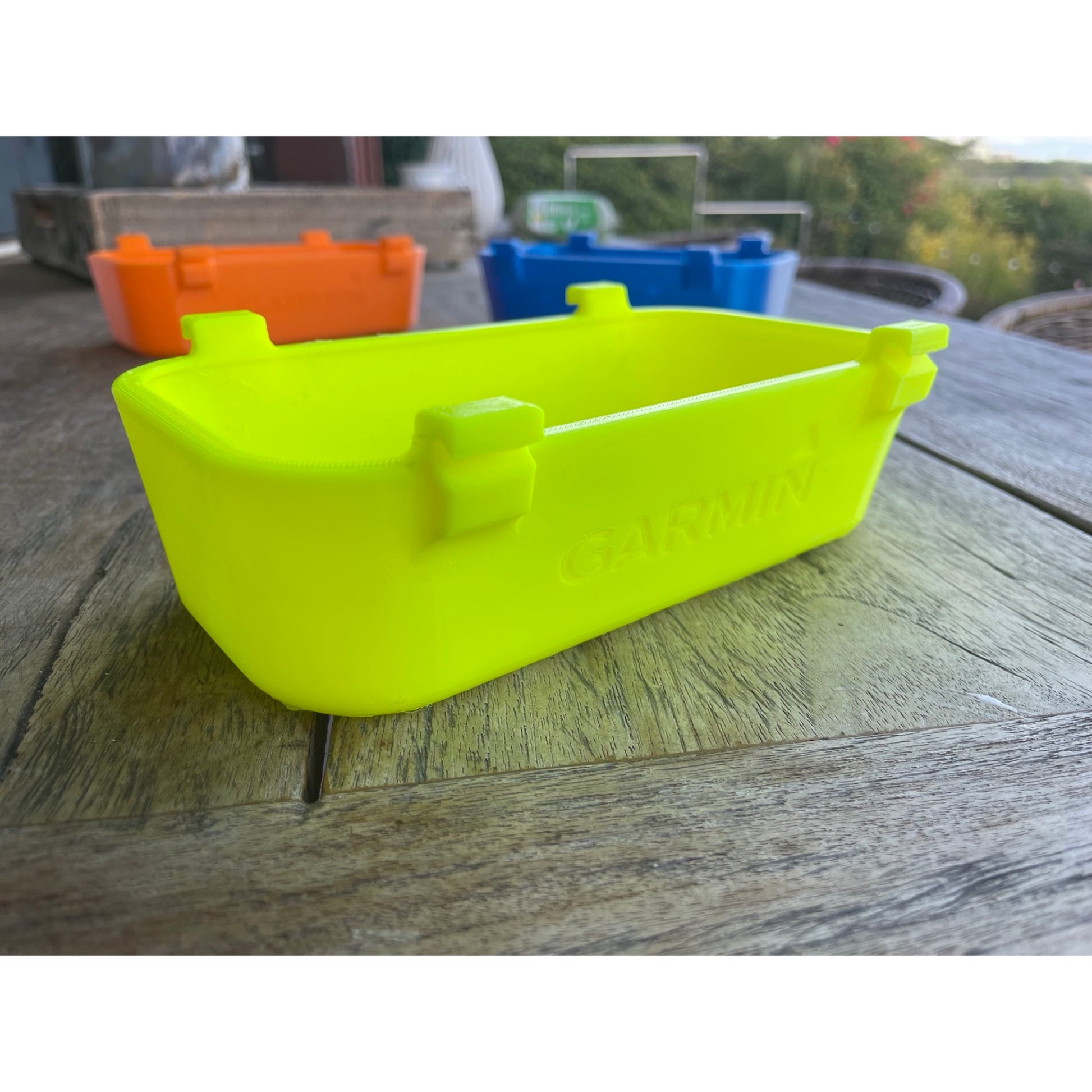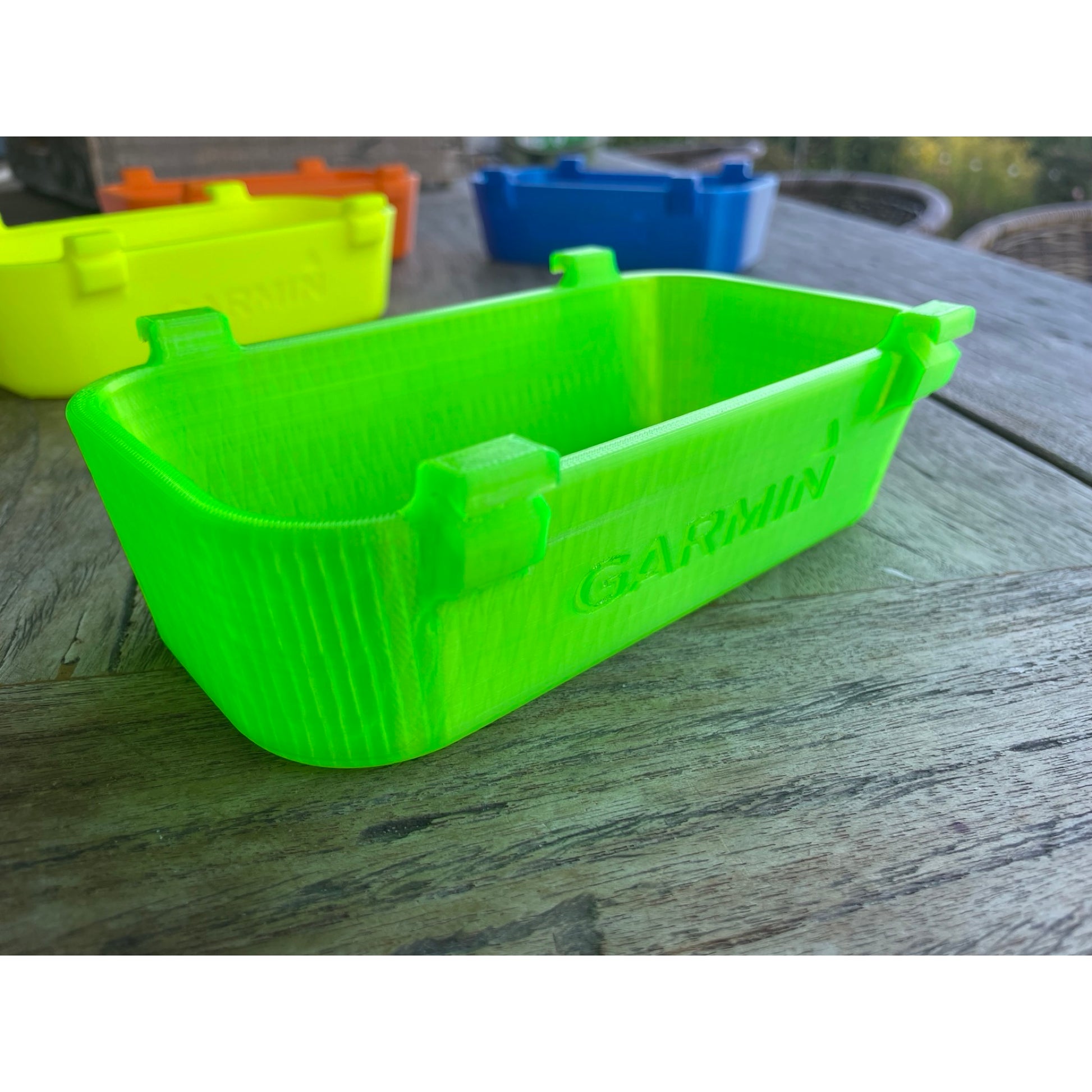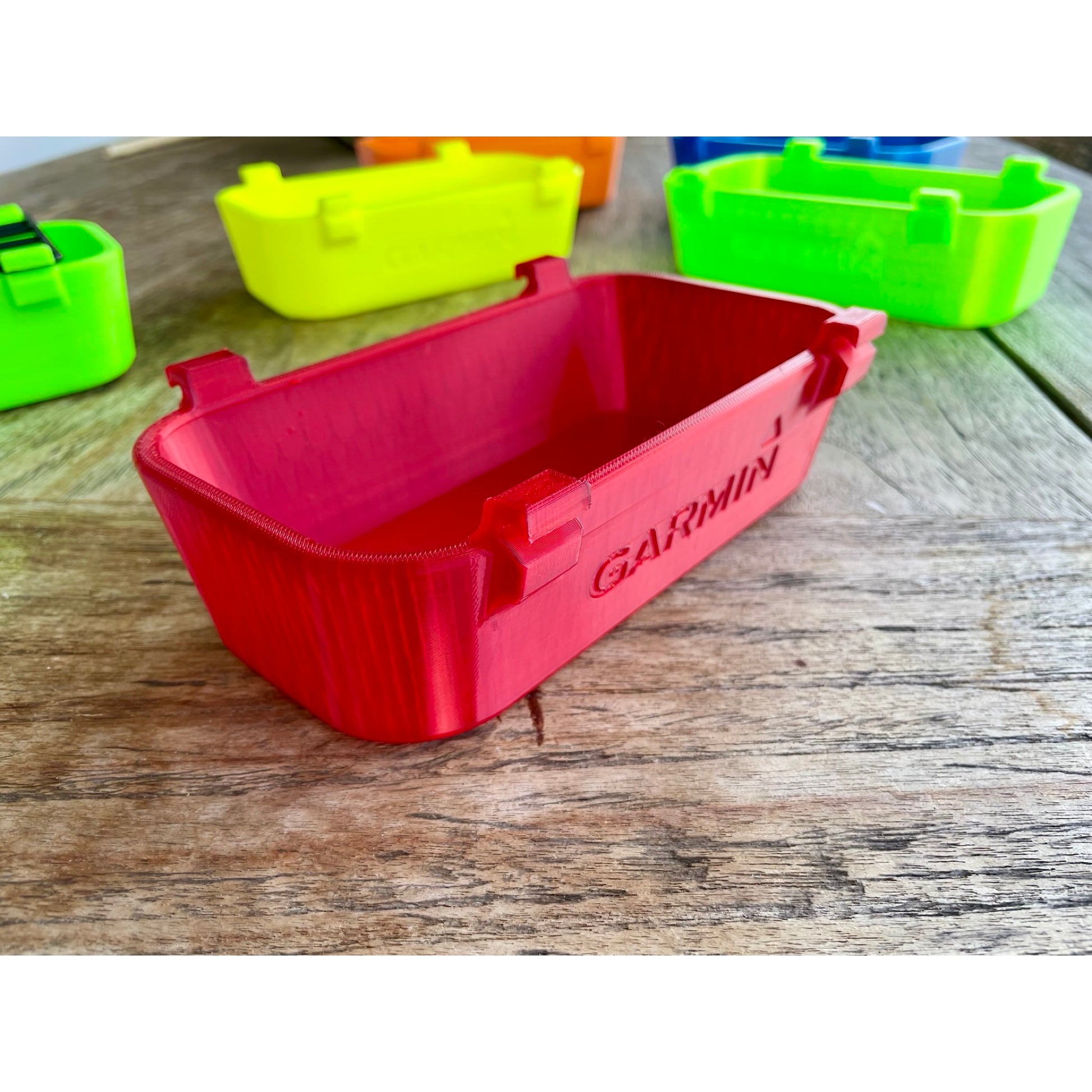 Jede Schutzhülle lässt sich individuell mit Logos und/oder Schriftzügen personalisieren. Diese Individualisierung soll durch das auf dem Produktbild dargestellte Garmin-Logo symbolisiert werden. Um keine Markenrechte zu verletzen werden alle Schutzhüllen standardmäßig ohne Herstellerlogo geliefert.