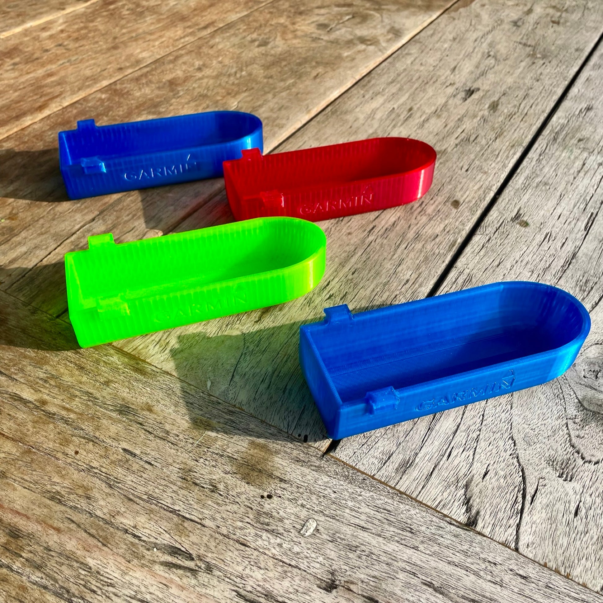 Jede Schutzhülle lässt sich individuell mit Logos und/oder Schriftzügen personalisieren. Diese Individualisierung soll durch das auf dem Produktbild dargestellte Garmin-Logo symbolisiert werden. Um keine Markenrechte zu verletzen werden alle Schutzhüllen standardmäßig ohne Herstellerlogo geliefert.