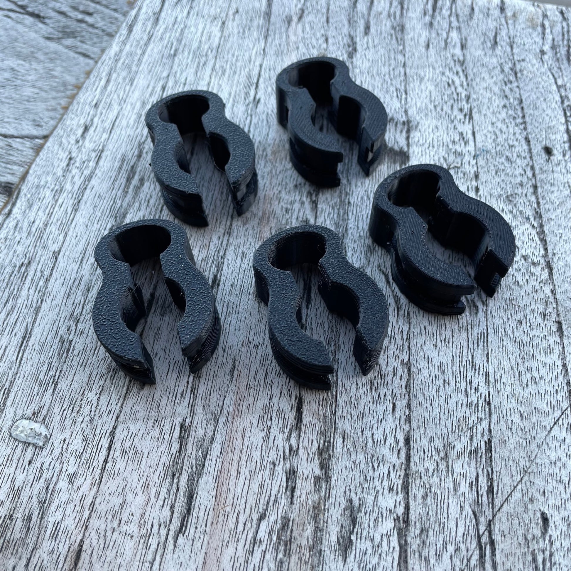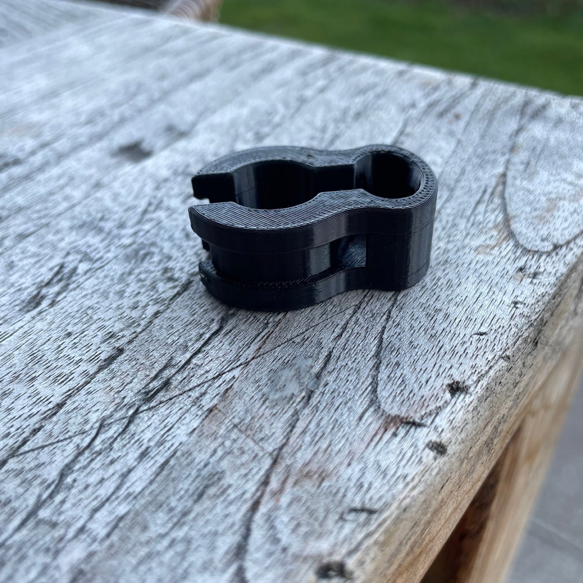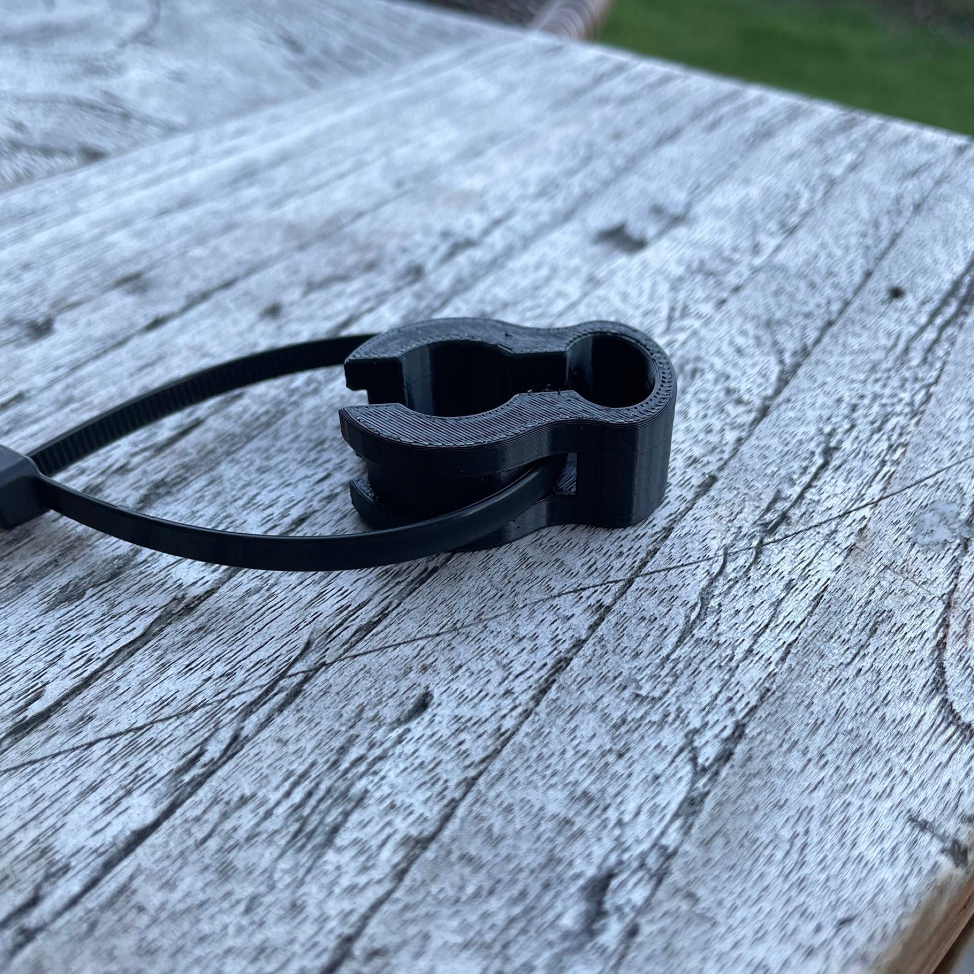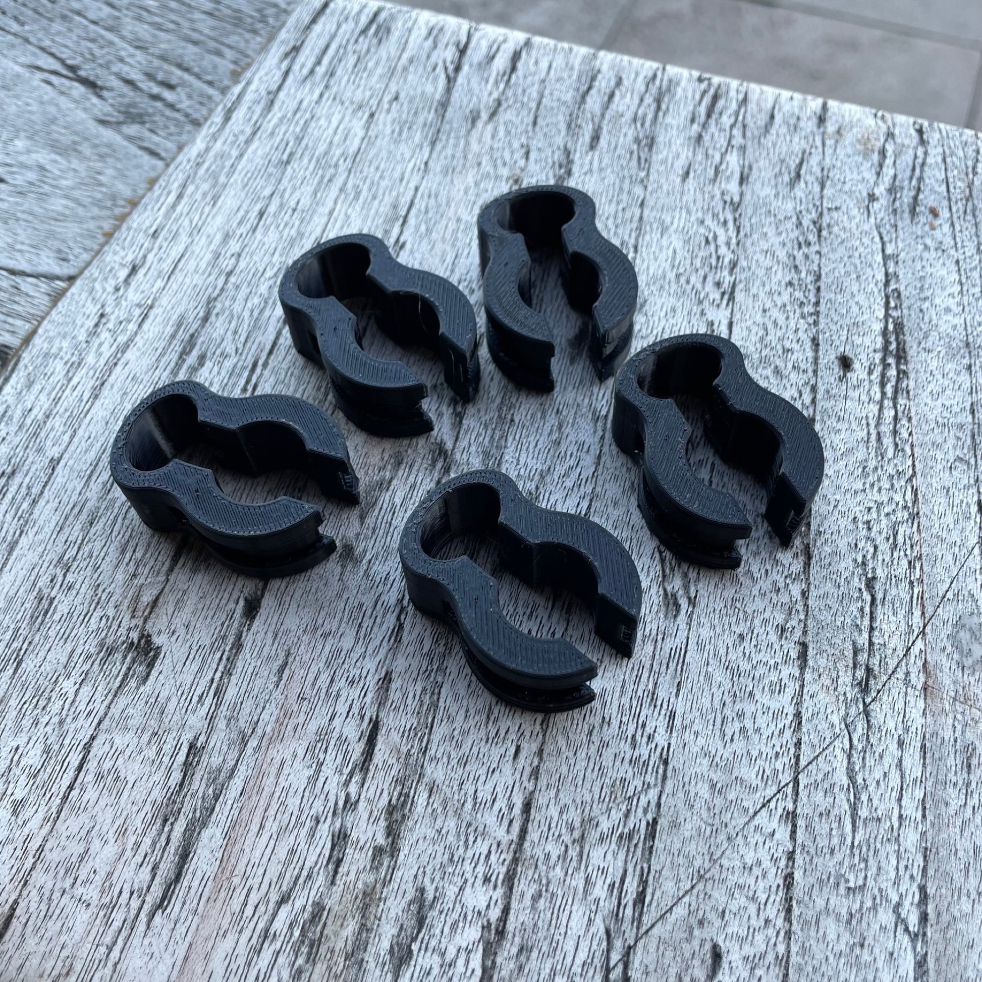 Die Kabelklammern sind aus extrem wasser- und UV-beständigem ASA hergestellt und lassen sich in nahezu allen Durchmessern von mir fertigen.