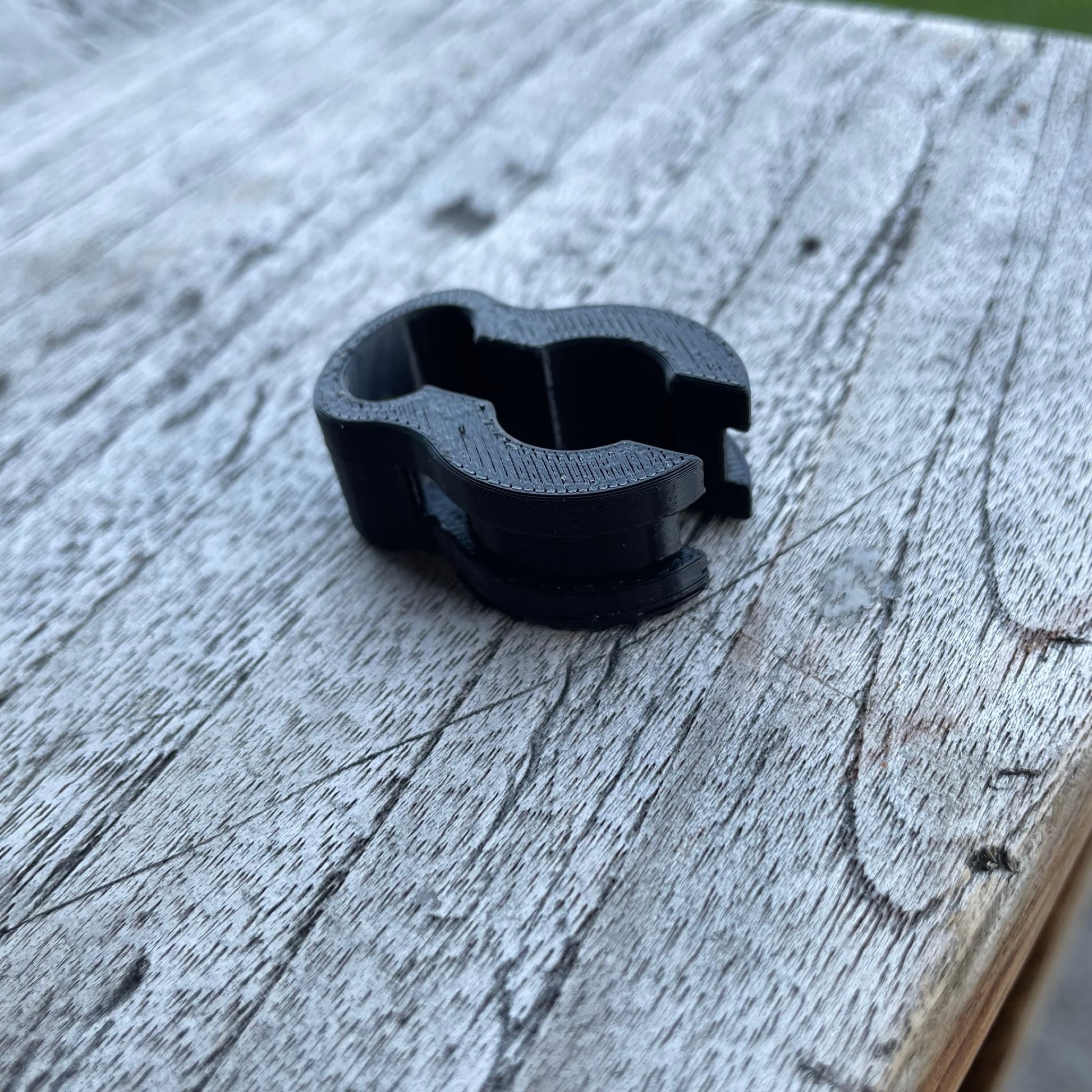 Daher habe ich diese Kabelklammern entwickelt - mit einem Montagearm der sicher und fest an der Geberstange befestigt werden kann und einem Kanal, in dem die Geberkabel dennoch ohne geknickt oder gequetscht zu werden, laufen können.